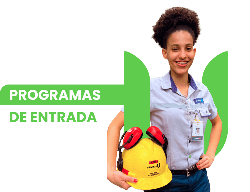 A Usiminas se conecta com os profissionais desde o início da carreira promovendo sua inserção no mercado de trabalho por meio de nossos programas de entrada. Propiciando planos de desenvolvimento, experiências práticas e troca de conhecimentos, os estudantes ou recém-formados possuem a oportunidade de aprender e contribuir para a construção do presente e futuro da empresa.